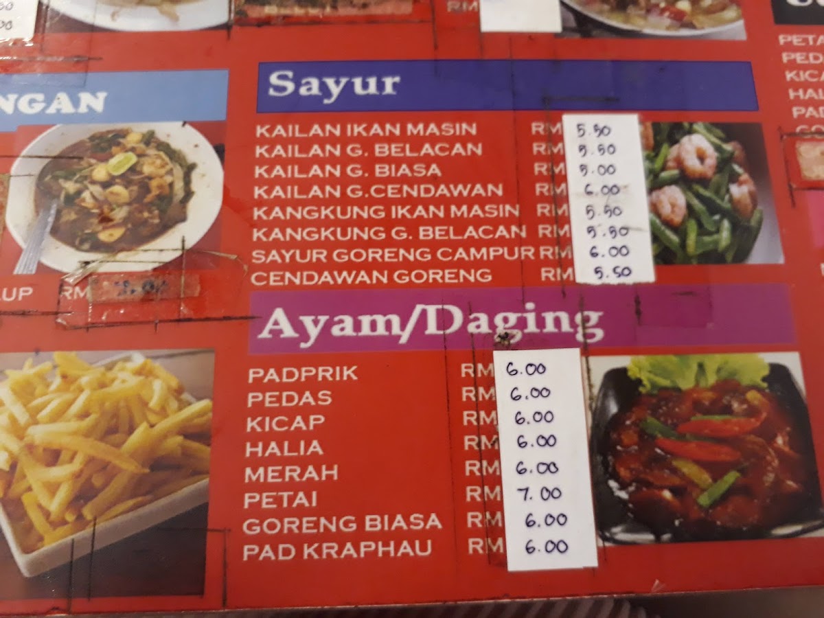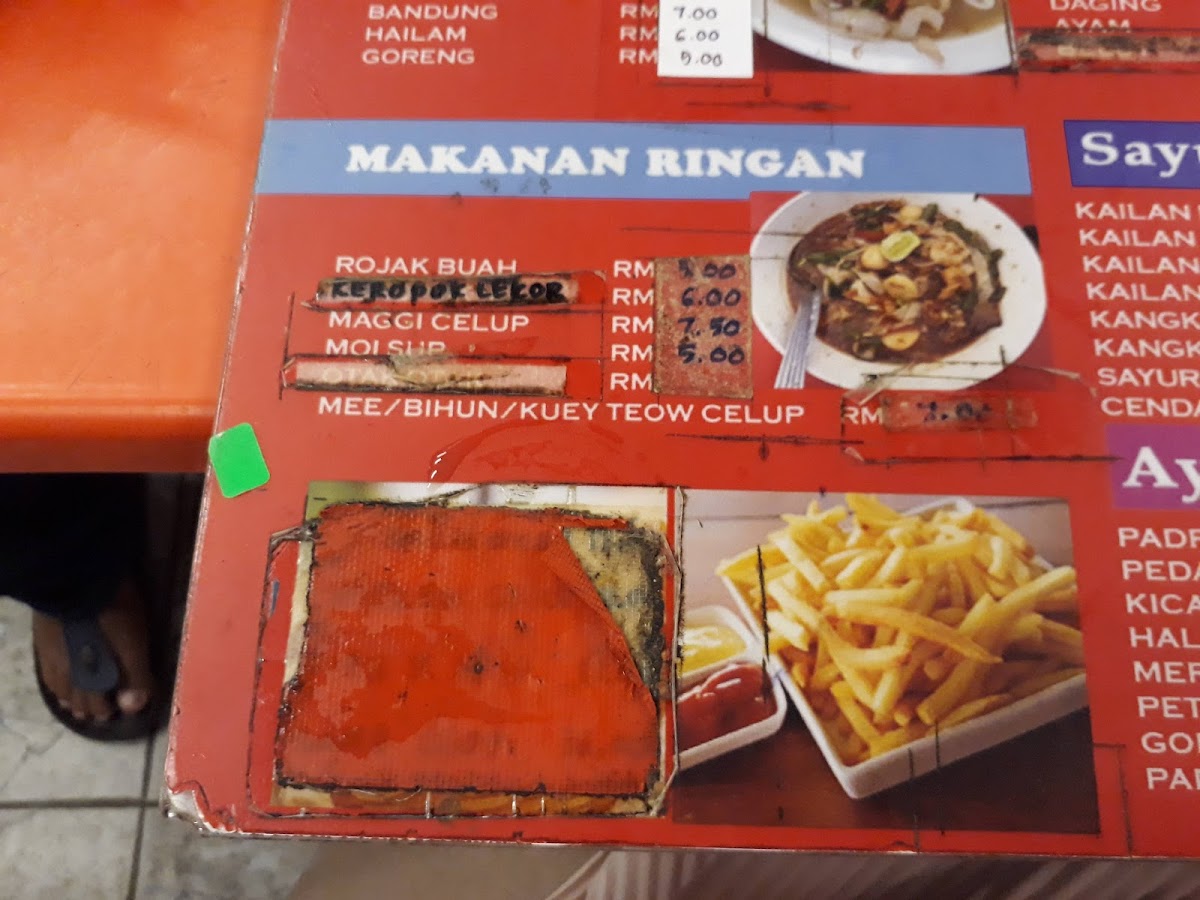 In addition to the noodle dishes, the menu offers a selection of rice-based meals like Nasi Goreng Kampung and Koay Teow Goreng. Seafood items are also available, including Siakap Stim Limau, Siakap Tiga Rasa, and Sate Ikan, providing a range of flavorful options. Light bites and snacks such as Keropok Lekor and Otak Otak are part of the assortment, suitable for smaller appetites or casual dining.