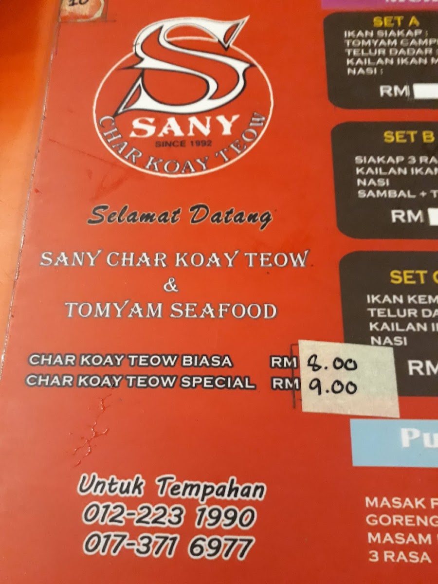 Sany Char Koay Teow Menu